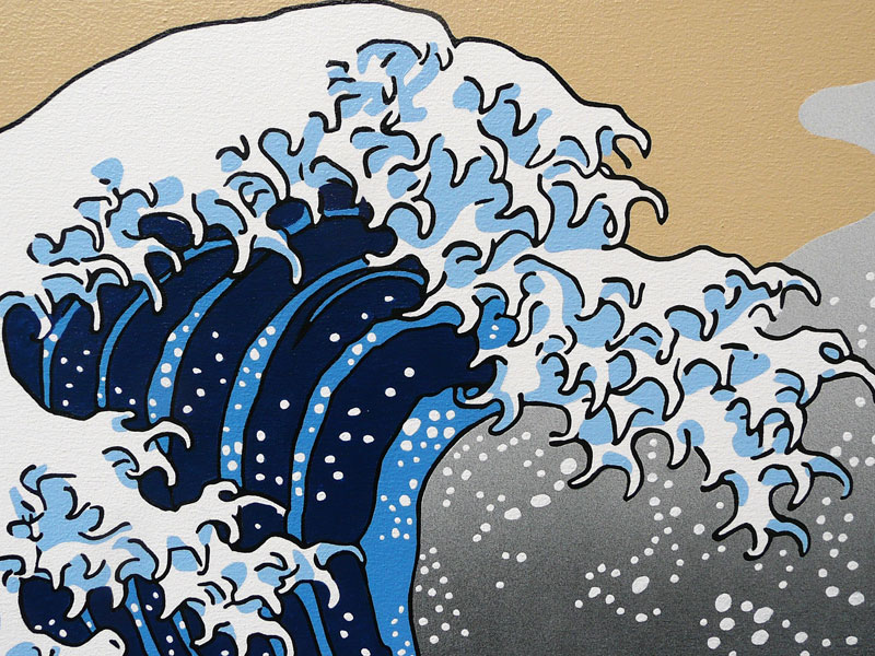 Recreating Hokusai's masterpiece "The Great Wave of Kanagawa" is something I wanted to do for a very long time. It is one of my favourite iconic images. Painted over the best part of eight weeks I was meticulous in reproducing the colours and detail in this large painting and believe me it was quite an effort. Well worth it, the finished piece is extremely powerful and one which will invite comment and admiration, of that there is no doubt.