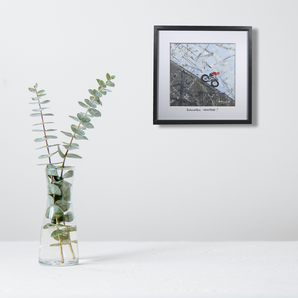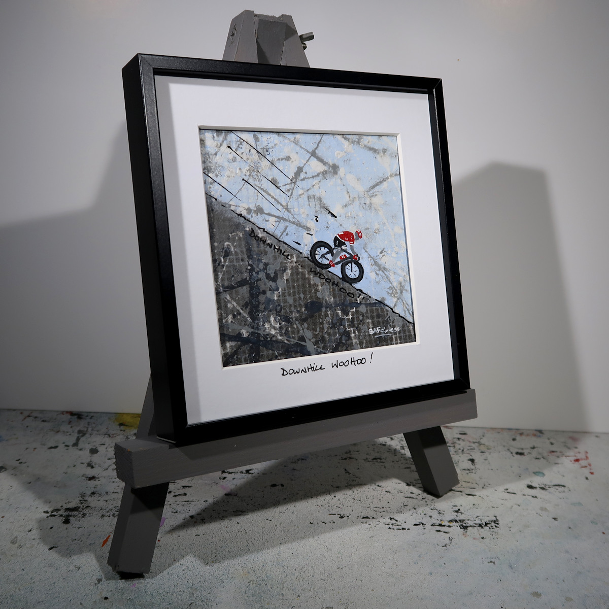 An original painting themed on one of my favorite pastimes cycling. A mix of abstract style with simple graphics representing a cyclist speeding downhill and we love doing that. Well at least I do. If you love your cycling then this just might be for you, a perfect gift for someone who loves to ride.